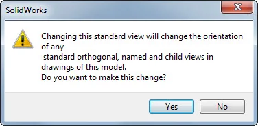The great thing about the using the Update Stand Views method is that you can always go back to the original view orientation by using the Reset Standard Views button to reset everything back to the way the part was first modeled.