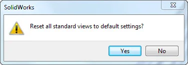 To get to this all you need to do is hit the Space Bar while in SolidWorks, this lists all of the Standard Views and Display Panes. The dialog box has 4 buttons across the top Previous View, New View, Update Standard Views, Reset Standard Views. New View does exactly what it says creates a new view in the exact orientation and zoom of a file, this is a good way to save off obscure views that you may want to put on a drawing or an area of the part that you want to work on later. The Update Standard Views button will allow you to redefine the Standard Views of your part and the way it works is as follows:
