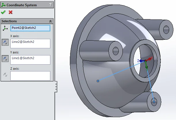 2. Generate 2 perpendicular lines in the proper orientation to represent 2 of the parts Axis.