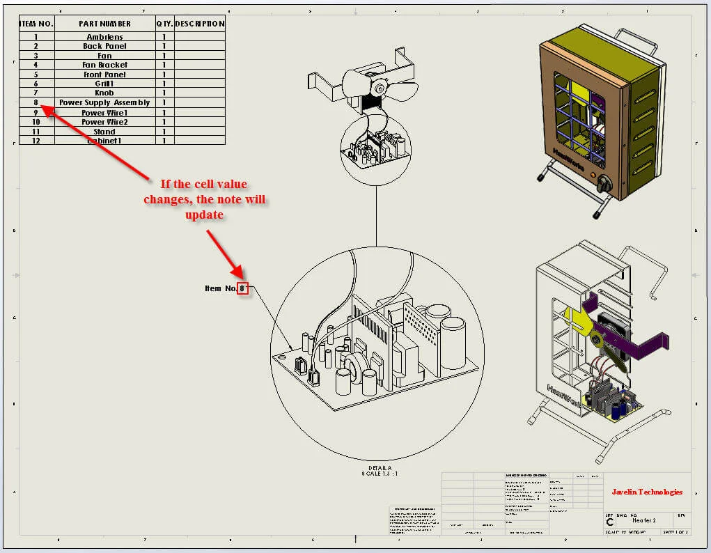 We all know that notes are an important part of any engineering drawing and help to transfer vital information. One of the problems when dealing with drawings is to keep these notes up to date. The best solution for that problem is to automate the process and ask the software to take care of maintaining them. That is what SOLIDWORKS keeps doing every year. For example, last year SOLIDWORKS added the functionality to link a Note to a Balloon using Flag Notes. Now in SOLIDWORKS 2017, they improved the Note tool again and this time you can link a note to a BOM or hole table cell.