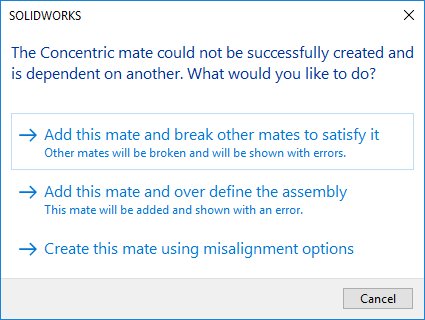 Since it is not always necessary to have fully concentric holes to assemble items, SOLIDWORKS 2018 can provide a good solution with the new misaligned mate options. Luckily, for those who don’t want any misalignment it is also possible to disable this setting. In the end, it is important for every engineer to know this new option, so their assemblies will behave as expected.