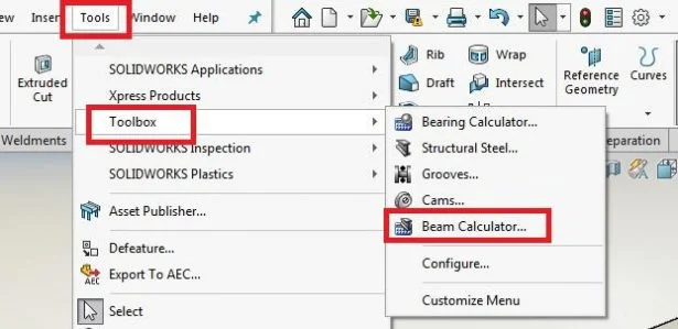Now Go to Tools-> Tool Box-> Choose – Beam Calculator.