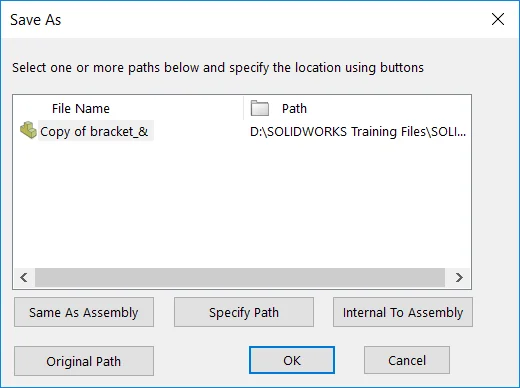 When the “Save As” box for this command appears, you have another opportunity to rename the part. You can also change file location if you wish.