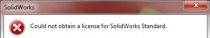 This error message is for the most part related to SOLIDWORKS Network License(SNL), and usually means that it is not possible to get a license from the license server.