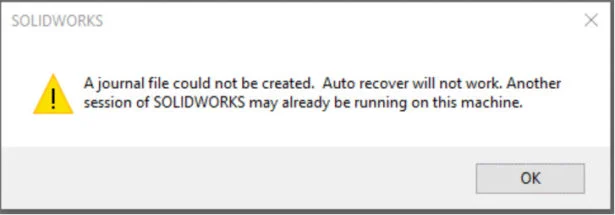 This error message can occur when SOLIDWORKS is starting. it is not a serious problem but an annoying one. You press OK and can start to work but you have to do this EVERY single time