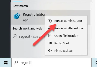 To do this, press your windows button and type “regedit”, right click on the icon and press “run as administrator”