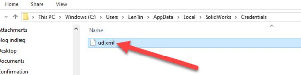 AppDataLocalSolidWorksCredentials - find the ud.xml file