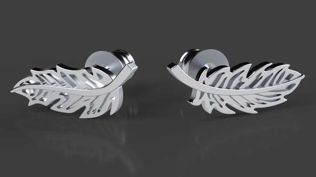 With the complete left earring part finished, mirror part was used to create the right earring. The best thing about mirroring a part is the automatic updates of the models, If any changes are made to the original left earring, the changes apply to the right earring part too. Another option for the right earring was to create a slightly different shaped feather earring, which is why there is a right feather earring PNG. file is included in the downloads of this blog. Because the earrings were being 3D printed, I decided to use that opportunity to have two different feather earrings which you can see in the below rendering. The earring is still a feather and they still ‘match’ in style and size, but the design is different. If you wanted to, you could just mirror the earring, create the slightly different earring from the other PNG. file, or create a different earring altogether.