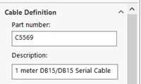 When creating a new cable, we first get the option to assign a part number for the cable. The part number will be what is displayed as the route name in your feature tree. We also get the option to add a description, it is this description that will be displayed in the available cables drop-down seen in the previous image.